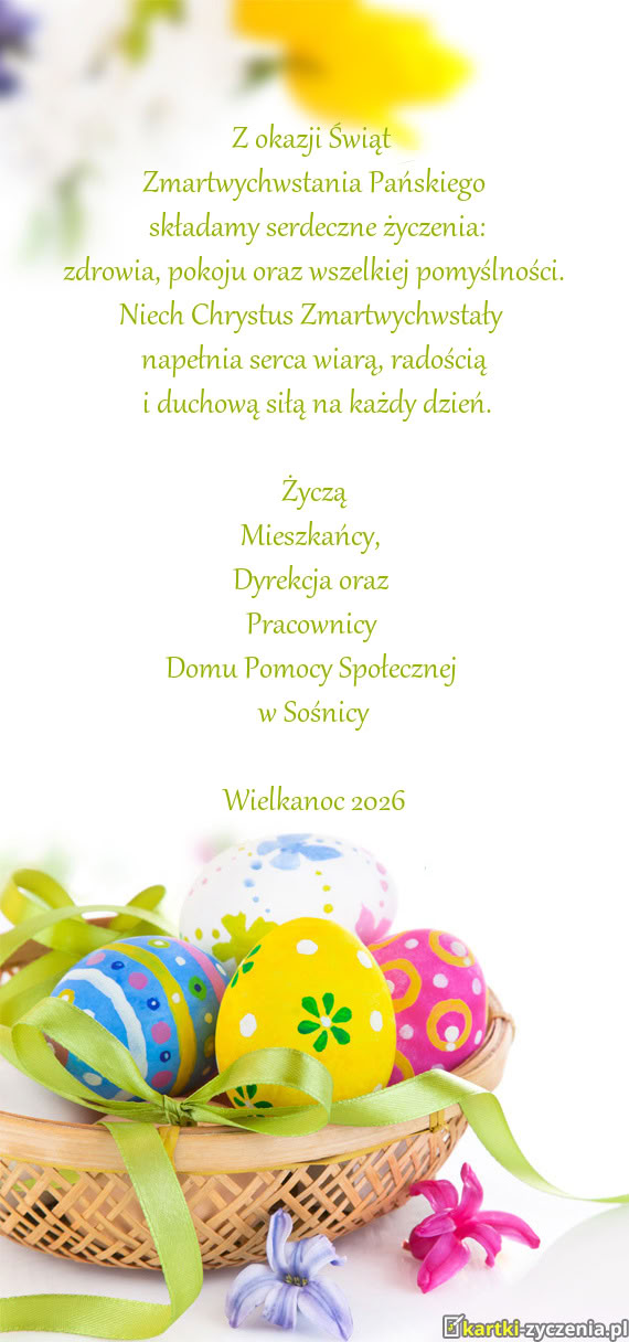 zdrowia, pokoju oraz wszelkiej pomyślności. Niech Chrystus Zmartwychwstały
