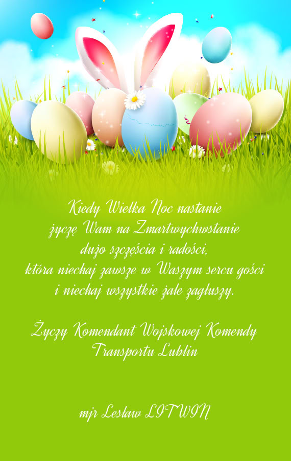 Życzy Komendant Wojskowej Komendy Transportu Lublin wraz z kadrą i pracownikami - Gotowa kartka na wielkanoc