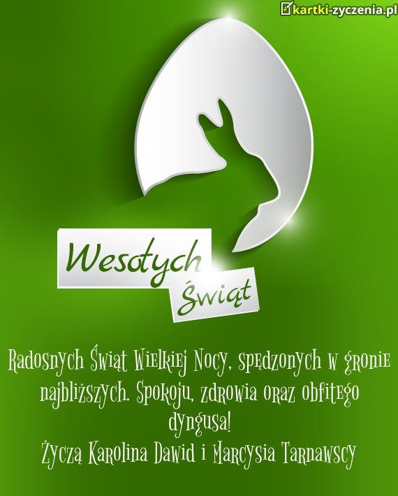 Radosnych Świąt Wielkiej Nocy, spędzonych w gronie najbliższych. Spokoju, zdrowia oraz obfitego