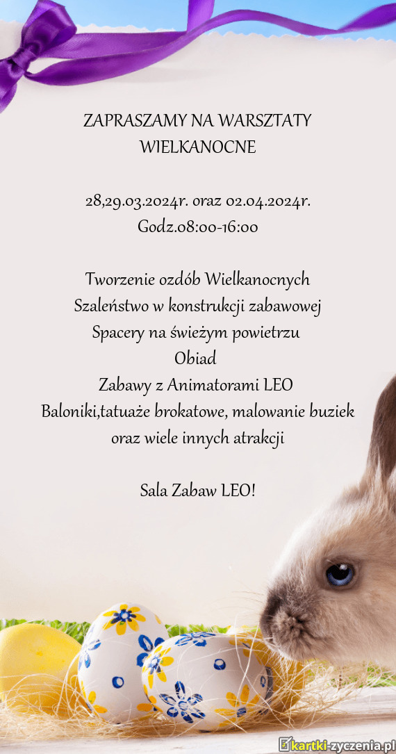 ZAPRASZAMY NA WARSZTATY WIELKANOCNE