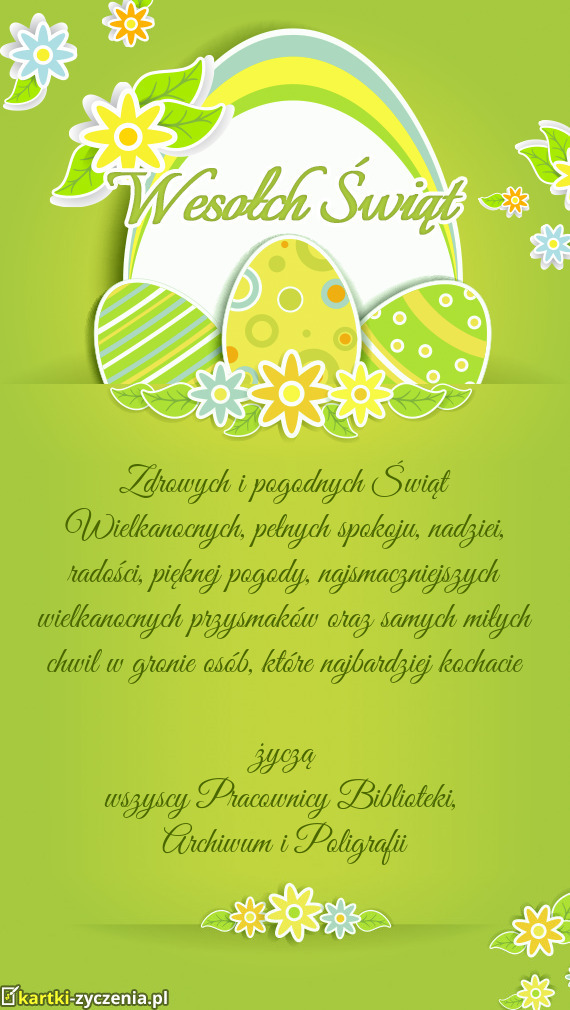 Niech te Święta przyniosą dużo zdrowia, radości, rodzinnego ciepła i wiosennego optymizmu, kt