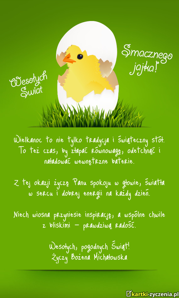 Z tej okazji życzę Panu spokoju w głowie, światła w sercu i dobrej energii na każdy dzień