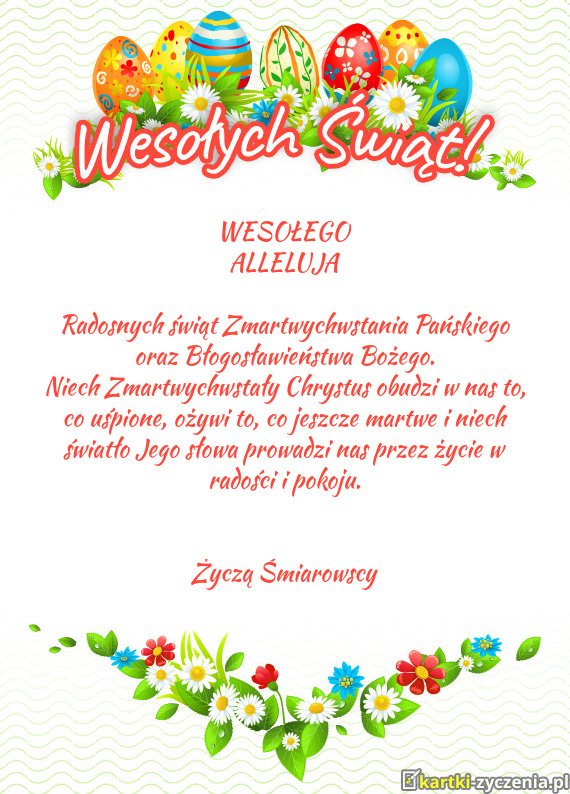 Radosnych spokojnych zdrowych smacznych świąt Wielkanocnych spędzonych w miłej rodzinnej atmosfe