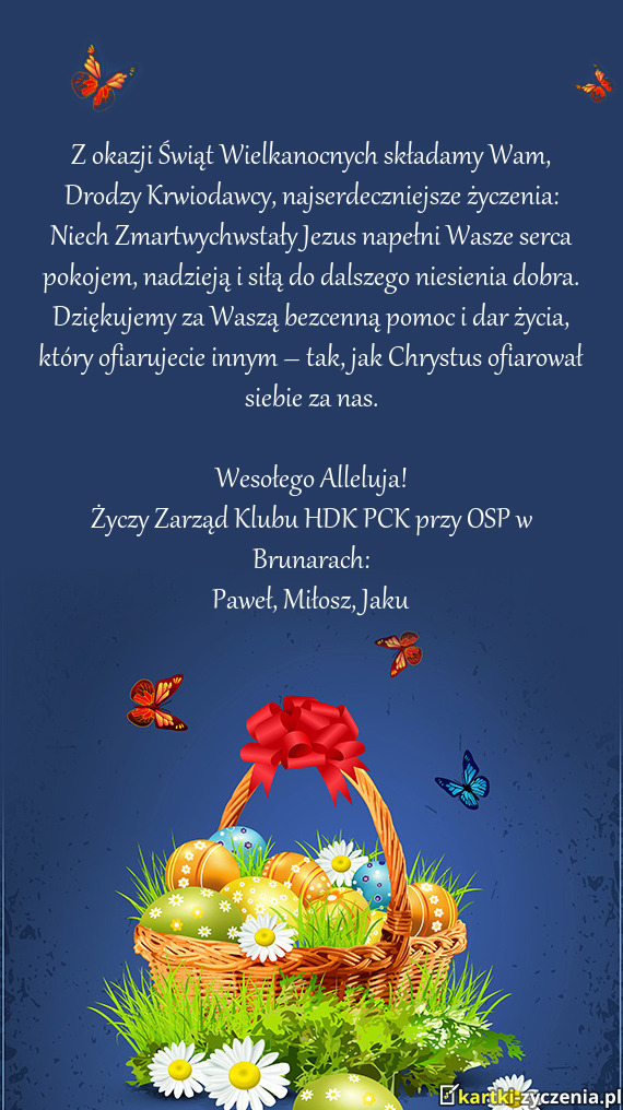 Z okazji Świąt Wielkanocnych pragniemy złożyć najserdeczniejsze życzenia — zdrowia, spokoju