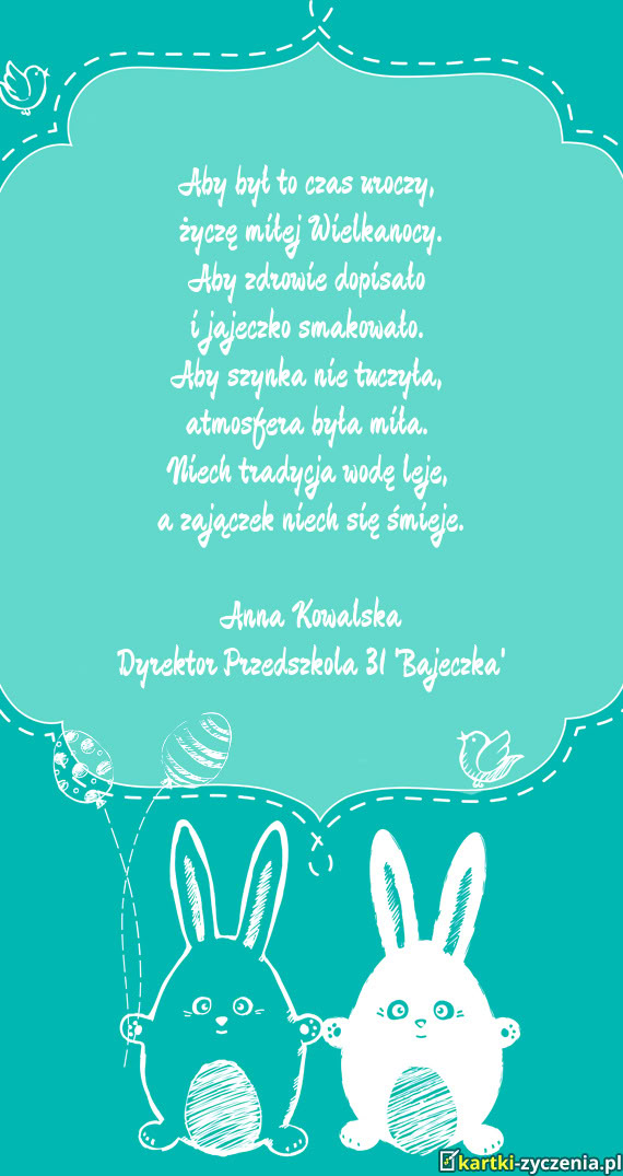 Niech Wielkanoc przyniesie spokój, ciepło i radość płynącą ze wspólnie spędzonych chwil. Ż