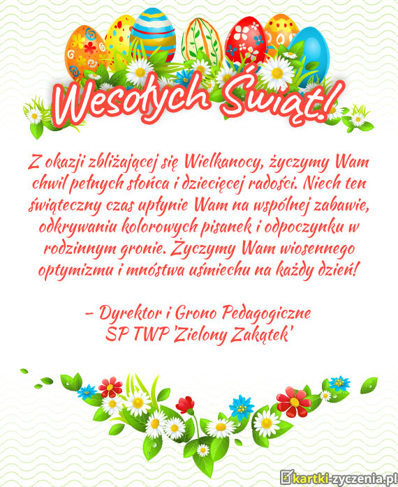 Niech nadchodzące Święta Wielkanocne będą pełne pokoju, harmonii i radości. Życzymy, aby ten