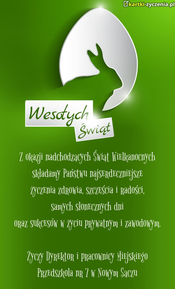 Życzy Dyrektor i pracownicy Miejskiego Przedszkola nr 7 w Nowym Sączu