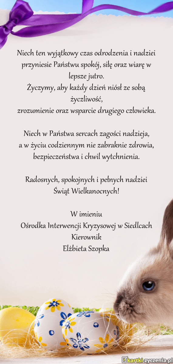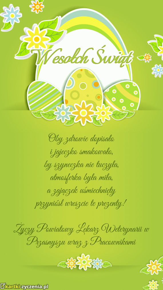 Życzy Powiatowy Lekarz Weterynarii w Przasnyszu wraz z Pracownikami
