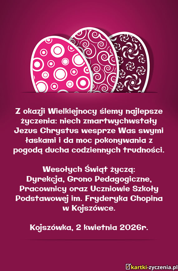 Z okazji Wielkiejnocy ślemy najlepsze życzenia: niech zmartwychwstały Jezus Chrystus wesprze Was