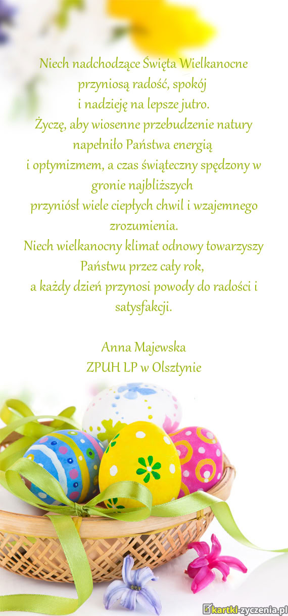 Niech nadchodzące Święta Wielkanocne przyniosą radość, spokój