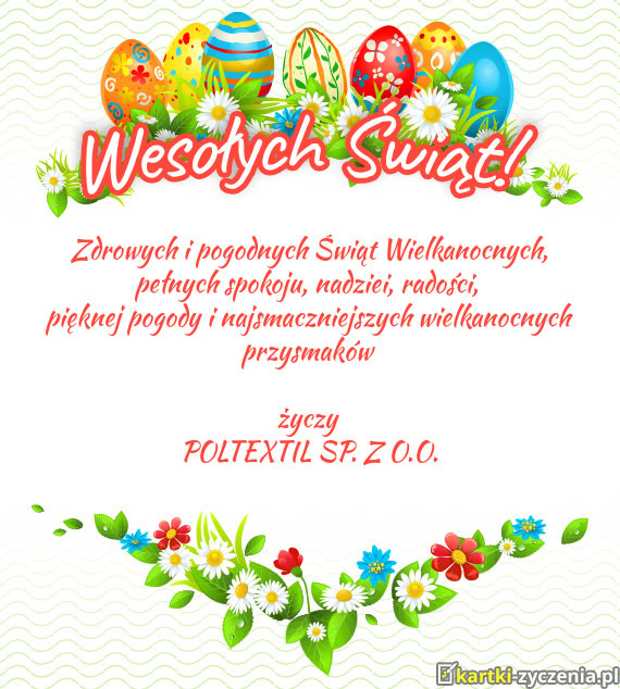 Pięknej pogody i najsmaczniejszych wielkanocnych przysmaków życzy POLTEXTIL SP