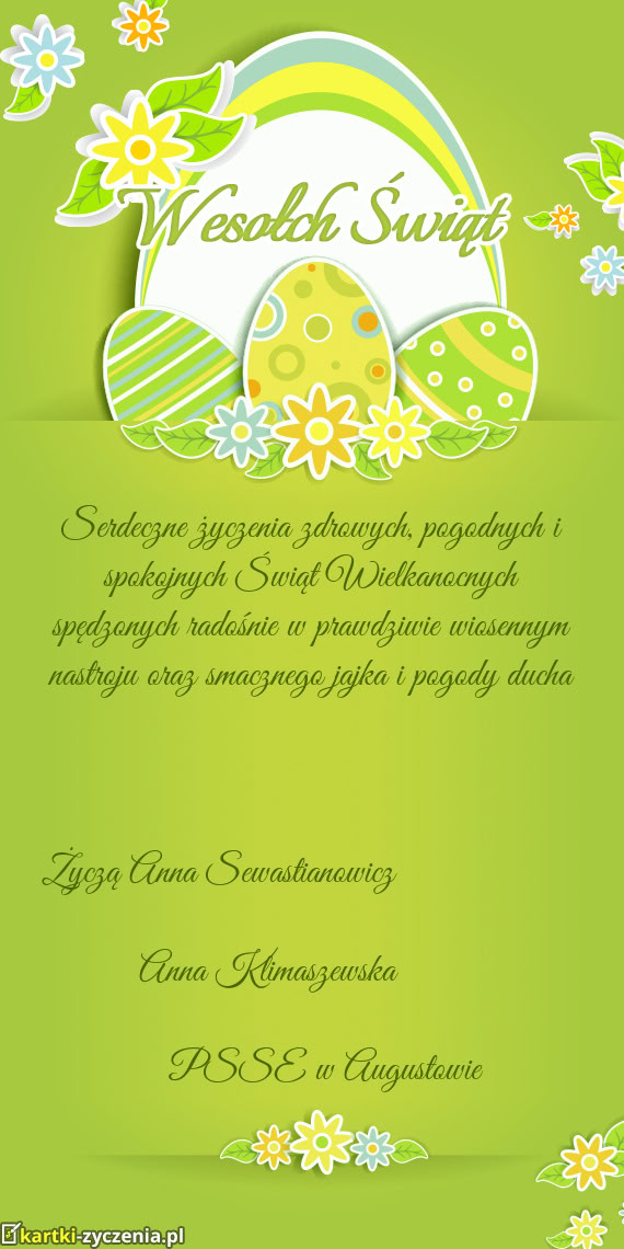 Serdeczne życzenia zdrowych, pogodnych i spokojnych Świąt Wielkanocnych spędzonych radośnie w p