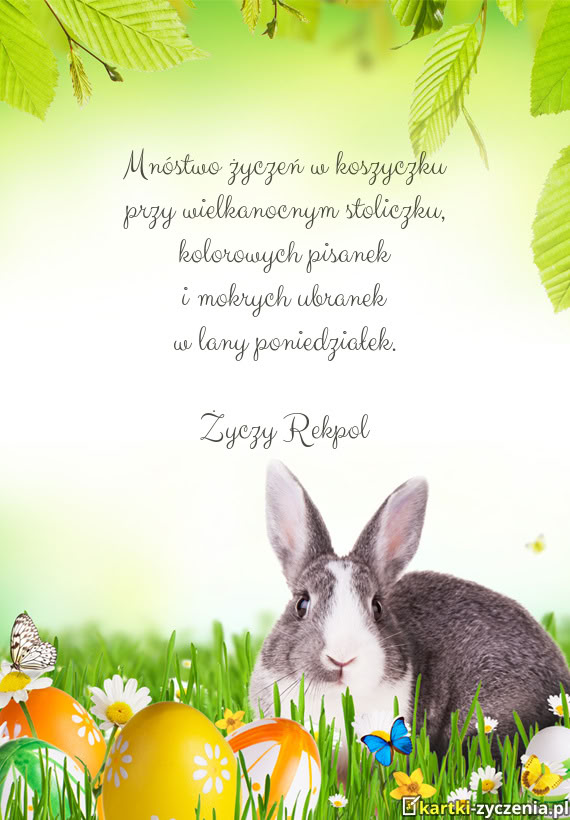 Mnóstwo życzeń w koszyczku przy wielkanocnym