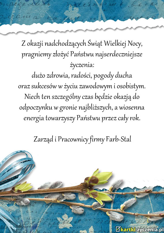 Z okazji Wielkanocy życzymy Państwu pełnych ciepła i miłości Świąt Wielkanocnych. Niech ten