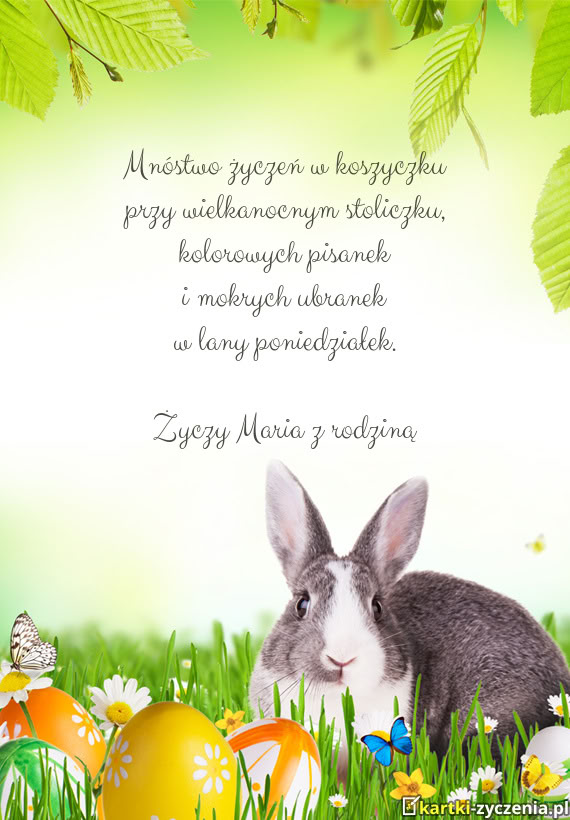 Mnóstwo życzeń w koszyczku przy wielkanocnym