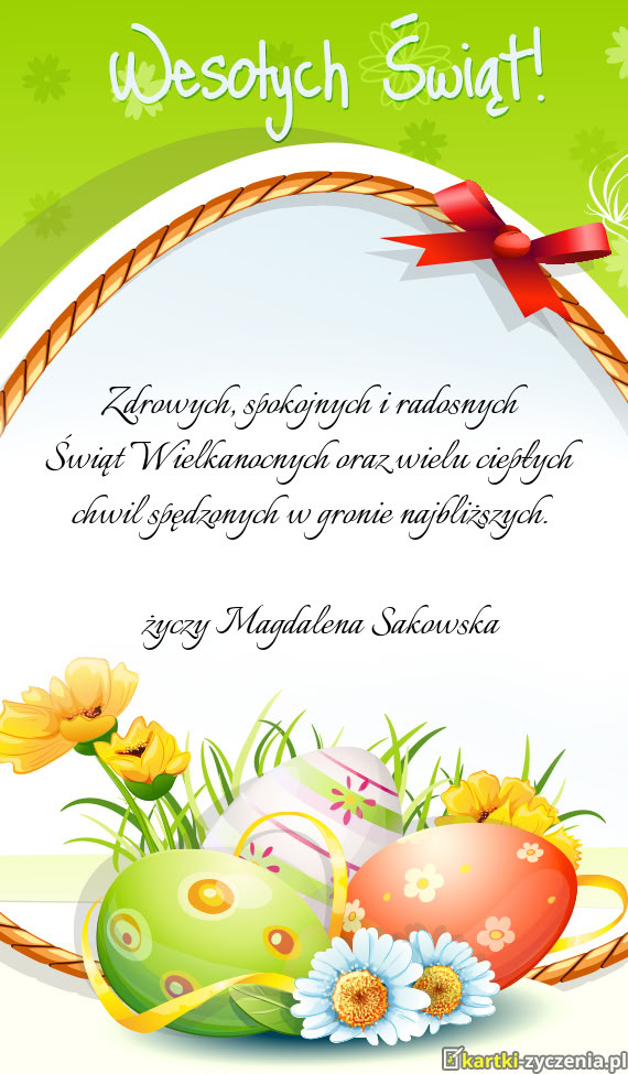 SPOKOJNYCH I RADOSNYCH ŚWIĄT WIELKANOCNYCH życzy Angela