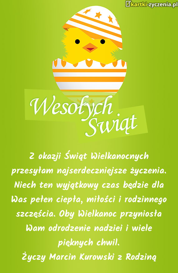Z okazji Świąt Wielkanocnych przesyłam najserdeczniejsze życzenia. Niech ten wyjątkowy czas bę