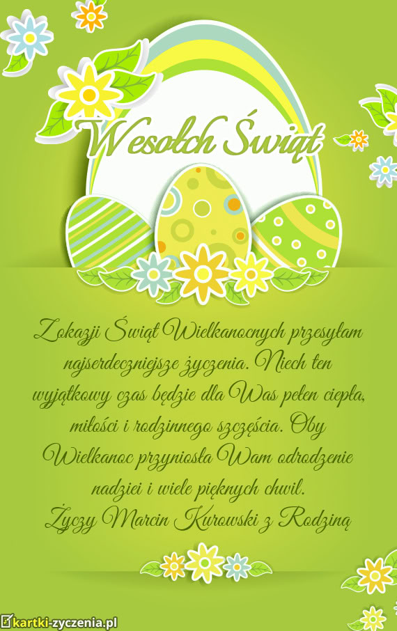 Dzie dla Was pełen ciepła, miłości i rodzinnego szczęścia. Oby Wielkanoc przyniosła Wam odrod