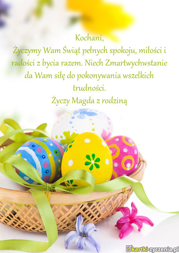 Życzymy Wam Świąt pełnych spokoju, miłości i radości z bycia razem. Niech Zmartwychwstanie da