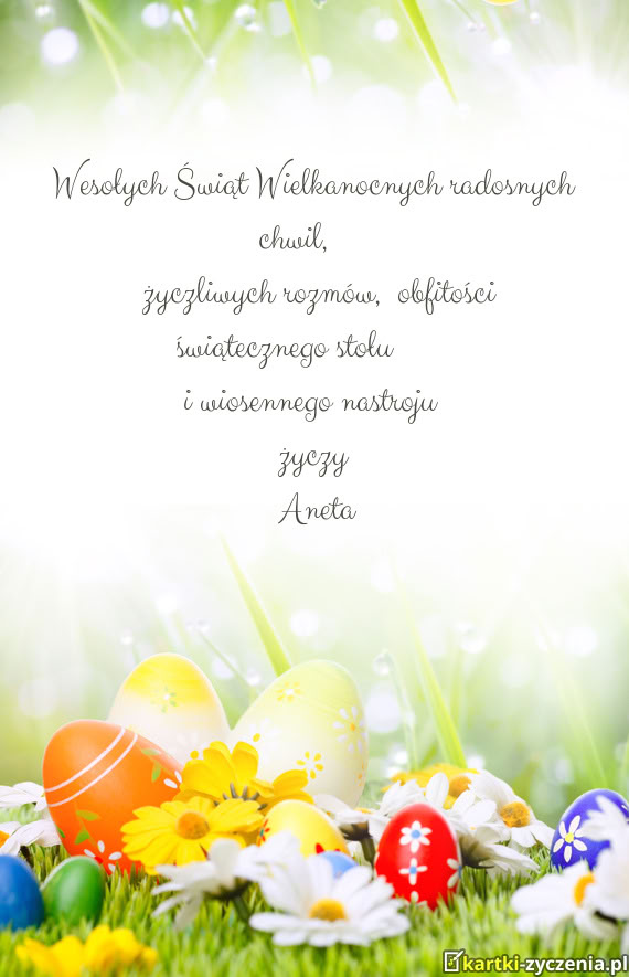 Obfitości świątecznego stołu i wiosennego nastroju życzy Aneta