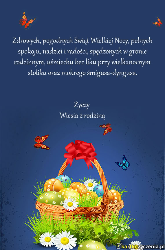 Zdrowych, pogodnych Świąt Wielkiej Nocy, pełnych spokoju, nadziei i radości, spędzonych w groni