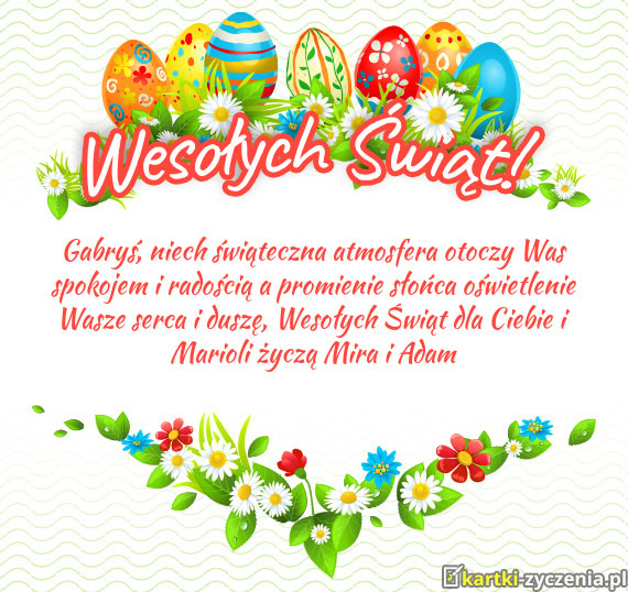 Gabryś, niech świąteczna atmosfera otoczy Was spokojem i radością a promienie słońca oświetl