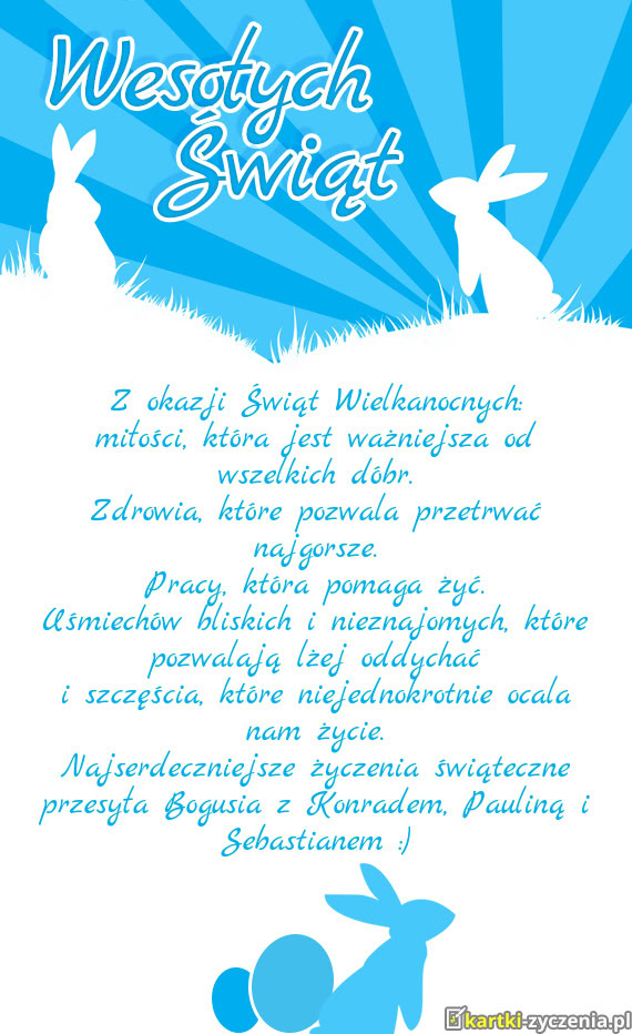 Najserdeczniejsze życzenia świąteczne przesyła Bogusia z Konradem, Pauliną i Sebastianem :)