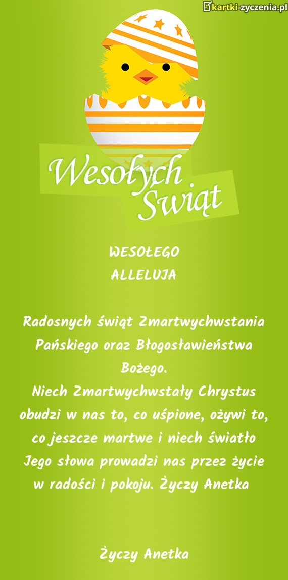Niech radosne Alleluja będzie dla Was ostoją zwycięskiej miłości i niezłomnej wiary. Niech pog