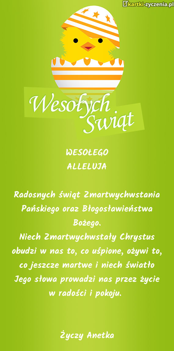 Niech radosne Alleluja będzie dla Ciebie ostoją zwycięskiej miłości i niezłomnej wiary. Niech