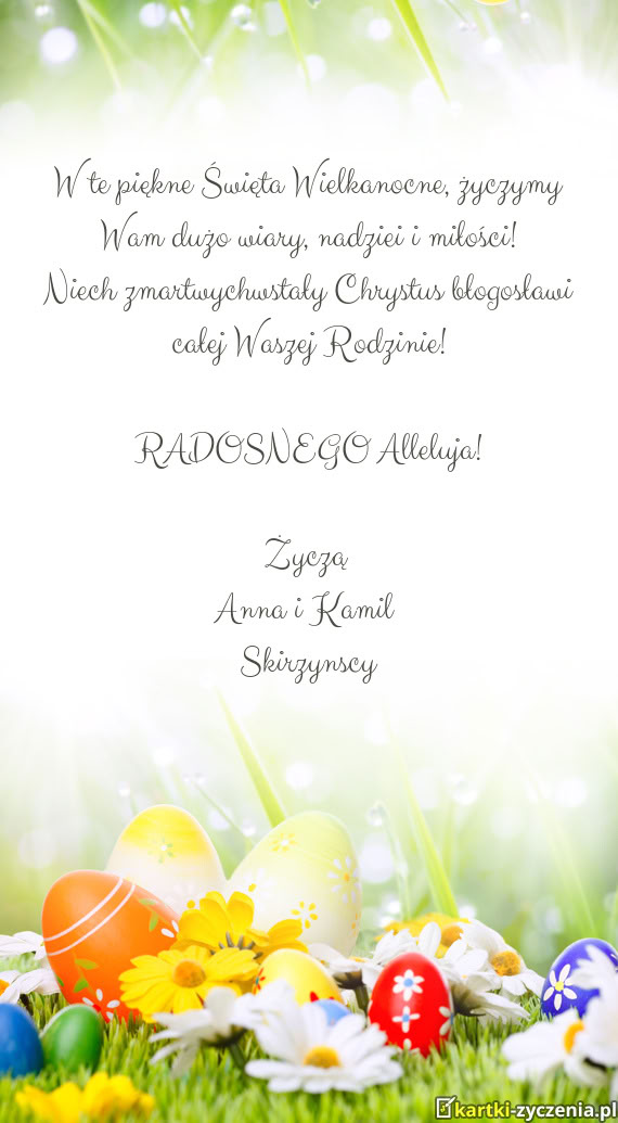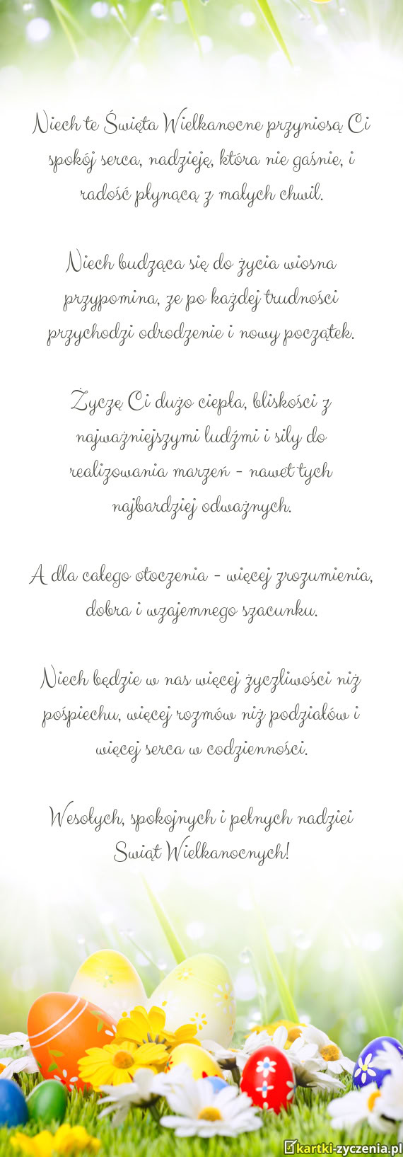 Niech te Święta Wielkanocne przyniosą Ci spokój serca, nadzieję, która nie gaśnie, i radość