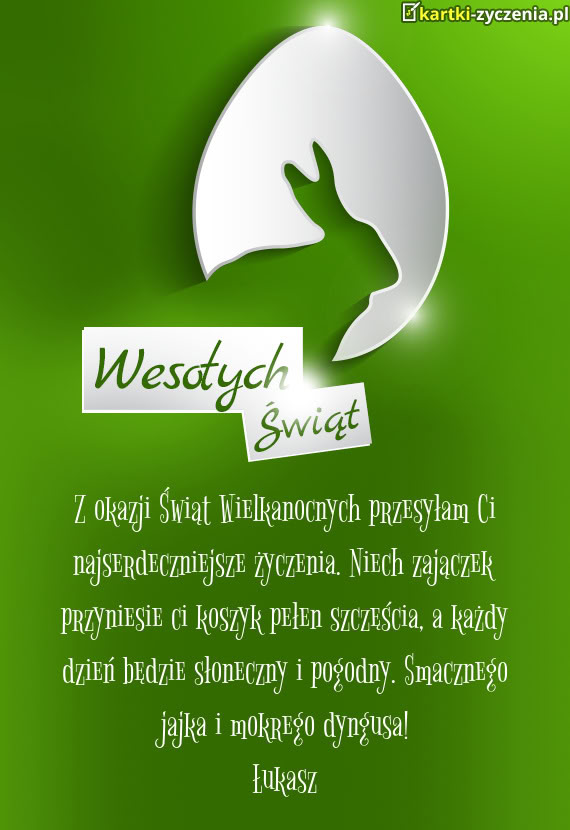 Z okazji Świąt Wielkanocnych przesyłam Ci najserdeczniejsze życzenia. Niech zajączek przyniesie