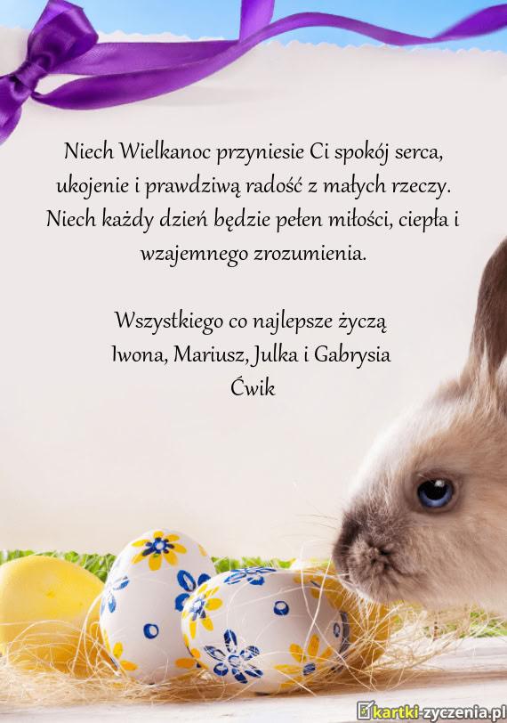 Niech Wielkanoc przyniesie Ci spokój serca, ukojenie i prawdziwą radość z małych rzeczy. Niech