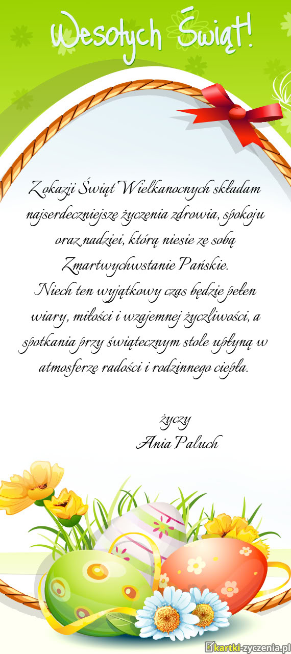 Niech Święta Wielkanocne sprawią Wam poczucie spokoju i wprowadzą do Domu radość, miłość i