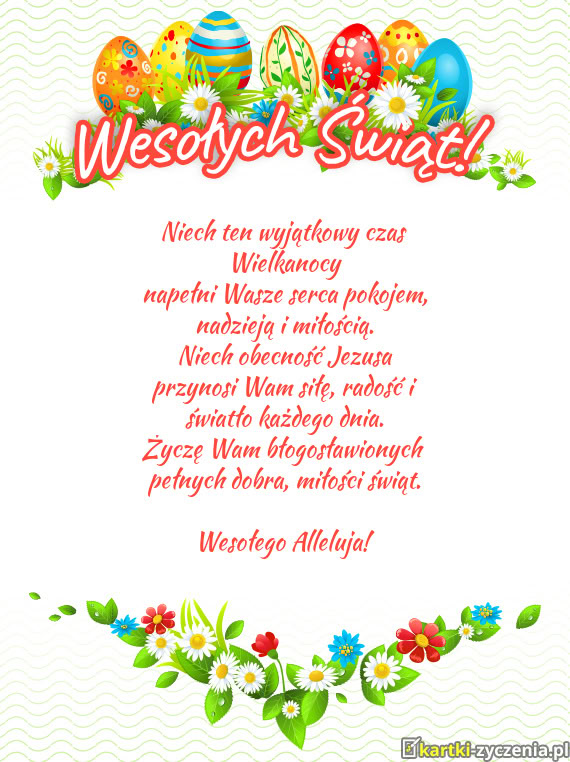 Radosnego, wiosennego nastroju, serdecznych spotkań w gronie rodziny i wśród przyjaciół oraz Wesołego Alleluja!