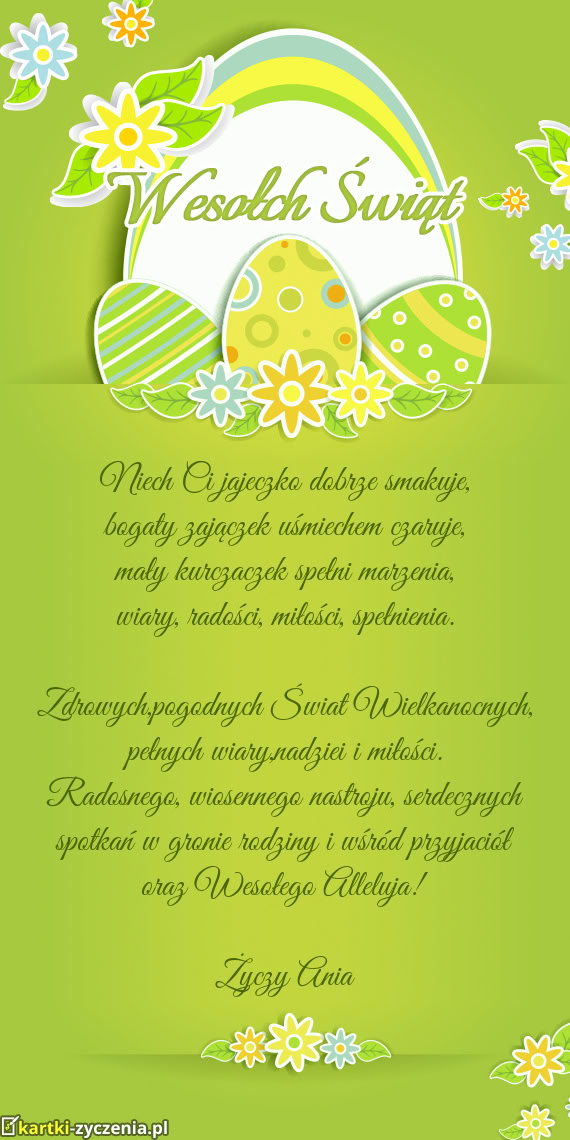 Serdecznych spotkań w gronie rodziny i wśród przyjaciół oraz Wesołego Alleluja!