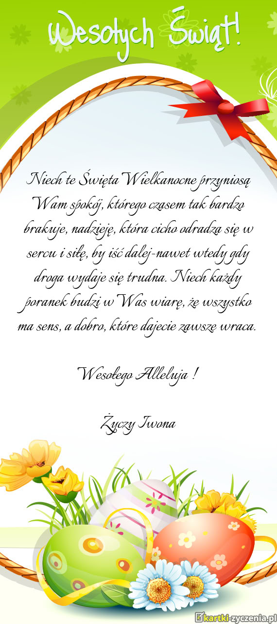 Niech te Święta Wielkanocne przyniosą Wam spokój, którego czasem tak bardzo brakuje, nadzieję