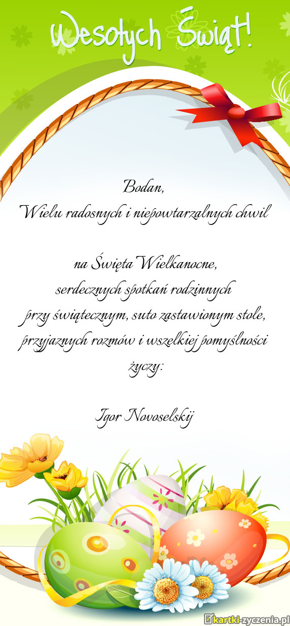 Niech te święta Wielkiej Nocy spłyną rzeką Boskiej