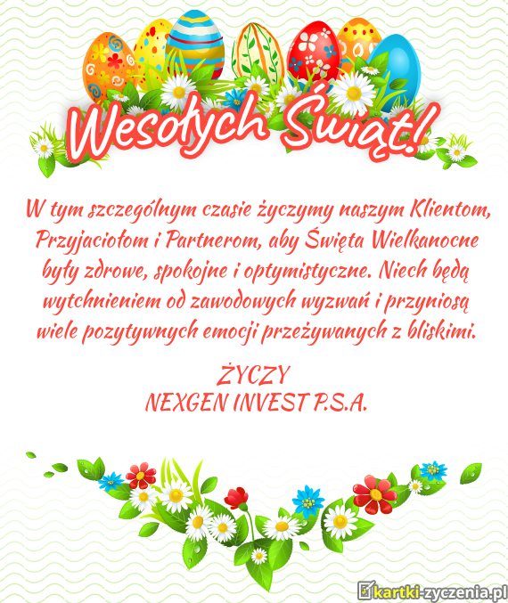 W tym szczególnym czasie życzymy naszym Klientom, Przyjaciołom i Partnerom, aby Święta Wielkano