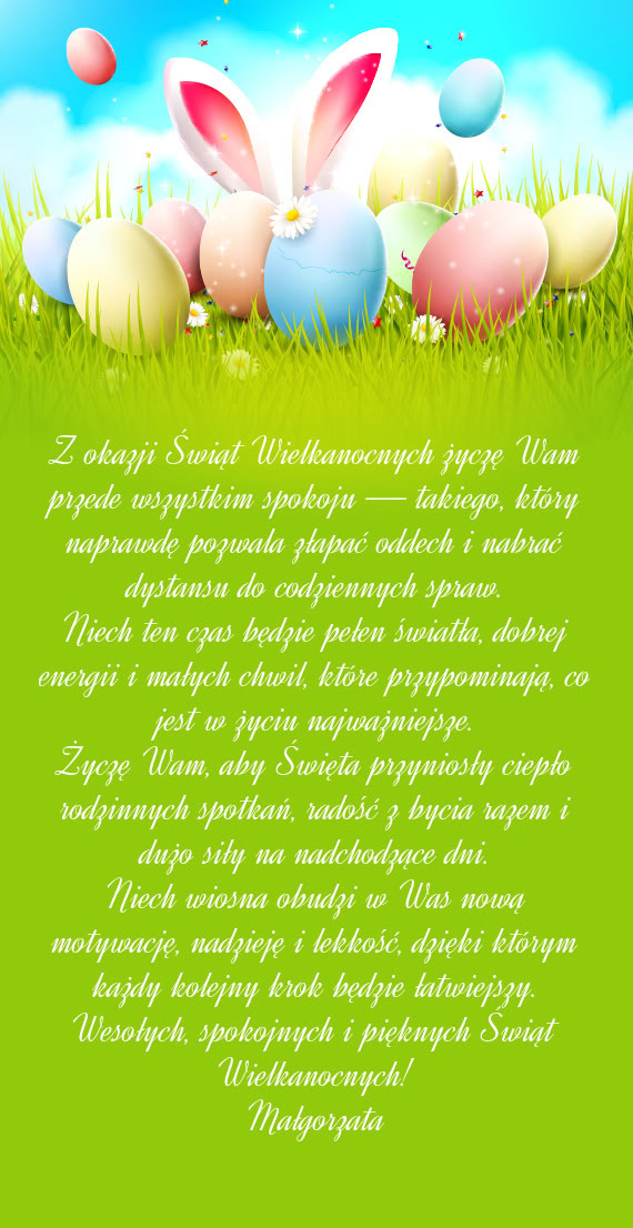 Dobrych, spokojnych, radosnych i zdrowych Świąt Wielkiej Nocy - Gotowa kartka na wielkanoc