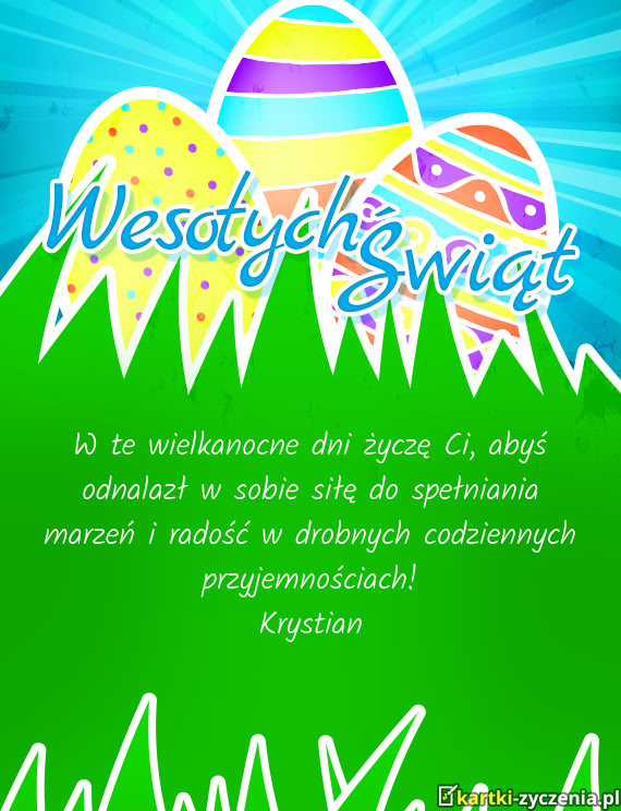 W te wielkanocne dni życzę Ci, abyś odnalazł w sobie siłę do spełniania marzeń i radość w drobnych codziennych przyjemnościach!