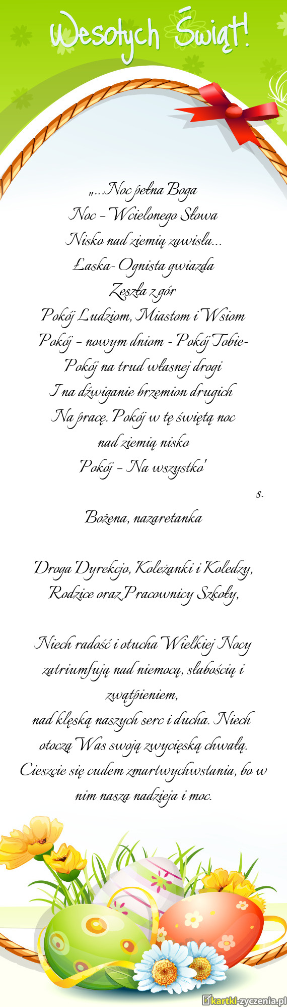 Droga Dyrekcjo, Koleżanki i Koledzy, Rodzice oraz Pracownicy Szkoły - Gotowa kartka na wielkanoc
