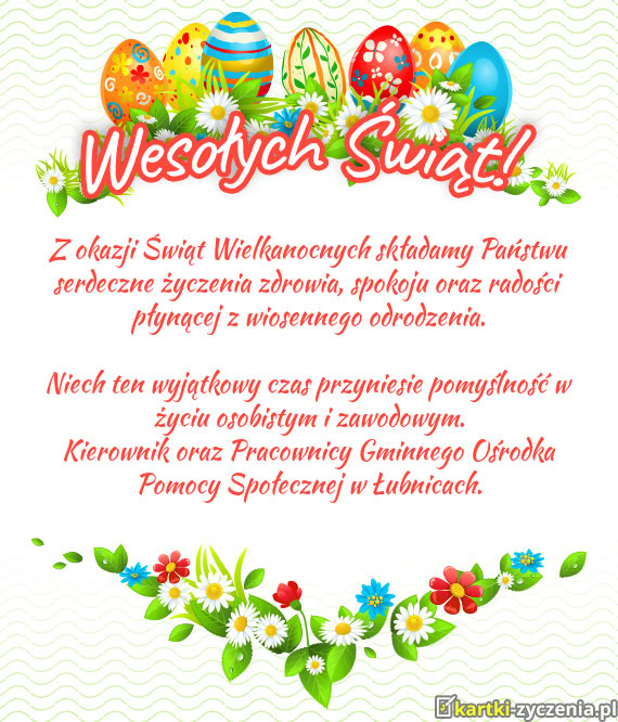 Dyrektor, pracownicy i wychowankowie Przedszkola im. Pszczółki Mai w Torzymiu - Gotowa kartka na wielkanoc