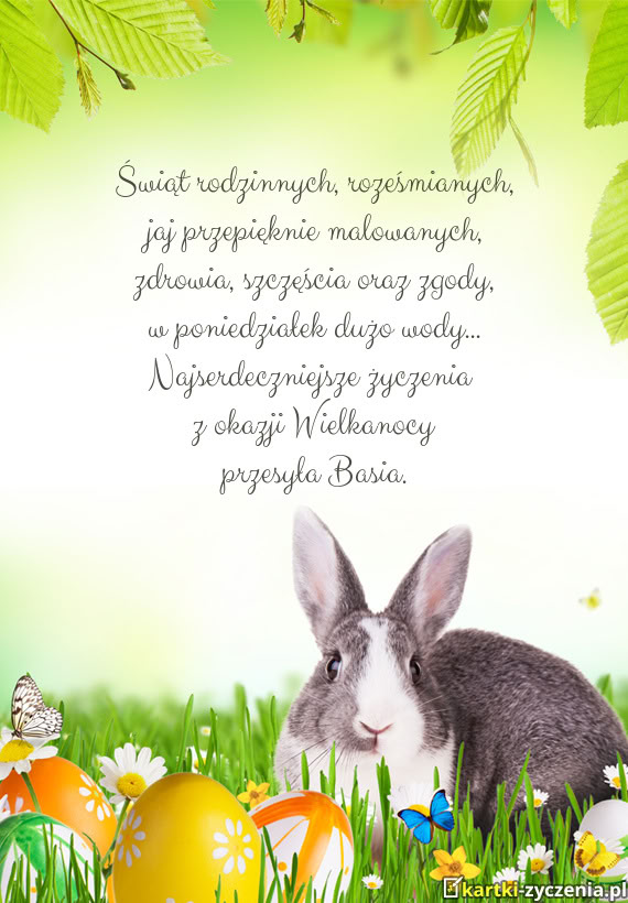 Najserdeczniejsze życzenia z okazji Wielkanocy przesyła Basia - Gotowa kartka na wielkanoc
