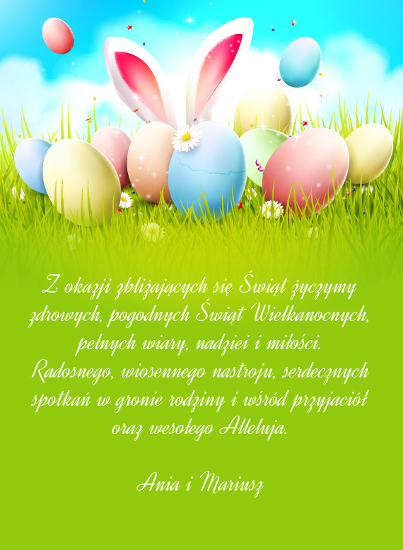 Najserdeczniejsze życzenia zdrowych , pogodnych i spokojnych Świąt Wielkanocnych przesyłają - Gotowa kartka na wielkanoc