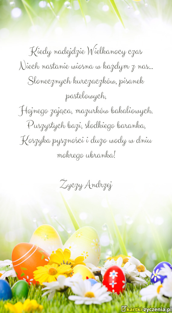 Nie wiesz jak i nie wiesz skąd W czasie Wielkanocnych Świąt Zjawił się zajączek mały Wielc - Gotowa kartka na wielkanoc