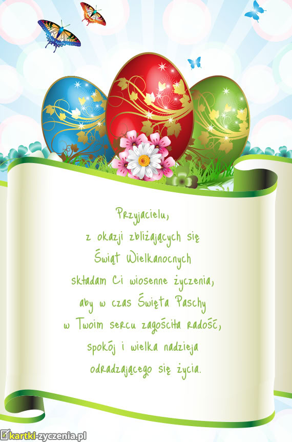 Niech zmartwychwstanie Pańskie napełni Wasze serca wiarą i pokojem. Wesołych i błogosławionych - Gotowa kartka na wielkanoc