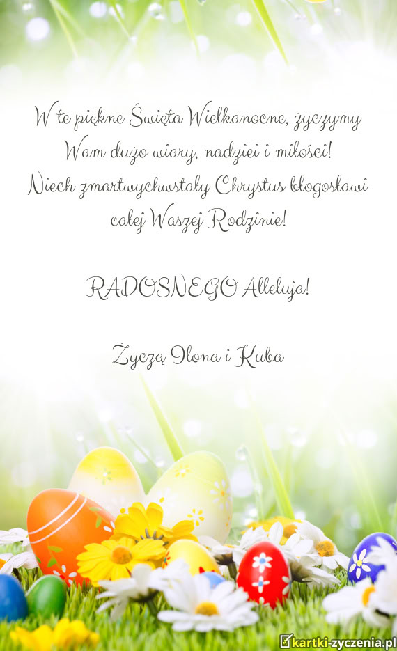 Zdrowych, pogodnych Świąt Wielkanocnych, pełnych wiary, nadziei i miłości. Radosnego, wiosennego nastroju oraz smacznego jajka w gronie najbliższych życzy Andrzej z rodziną.