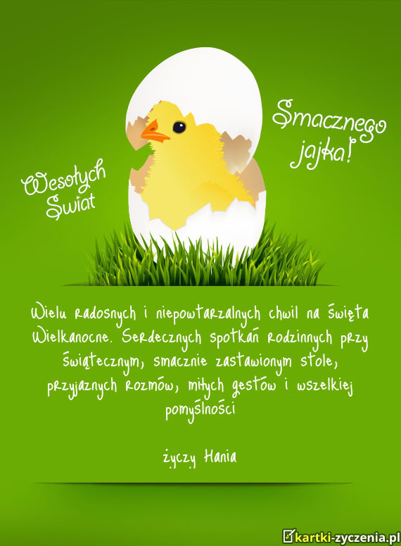 Obfitości świątecznego stołu i wiosennego nastroju życzy Grażyna z rodziną - Gotowa kartka na wielkanoc