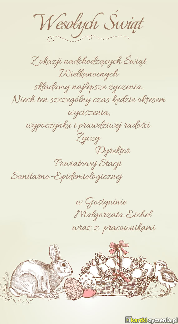 Zdrowych i pogodnych świąt Wielkanocnych,obfitości na świątecznym stole,smacznego jajka oraz wiosennego nastroju w rodzinnym gronie życzy