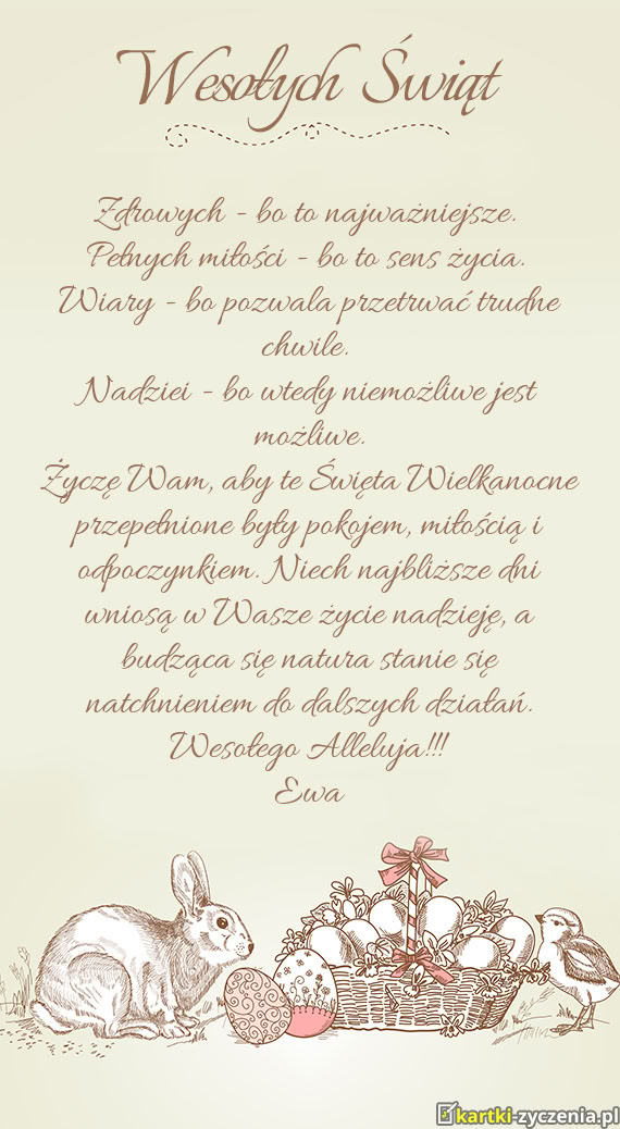 Pisanych jajeczek, wierzbowych bazieczek, kiełbasy - Gotowa kartka na wielkanoc